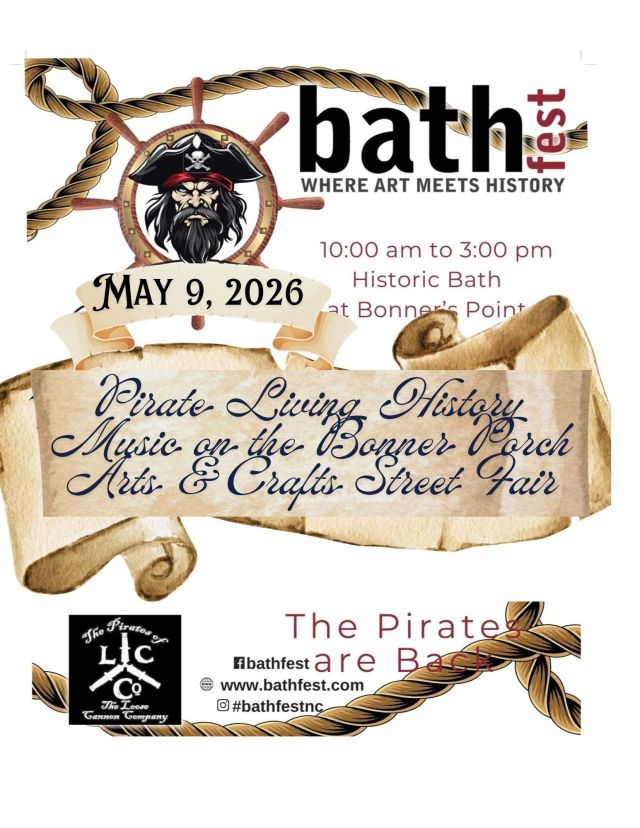The Bath Fest Committee is hard at work planning a 2026 family friendly event blending living history and art. Through living history step back in time to experience the time pirates called Bath home as once again pirates walk the streets of historic Bath.